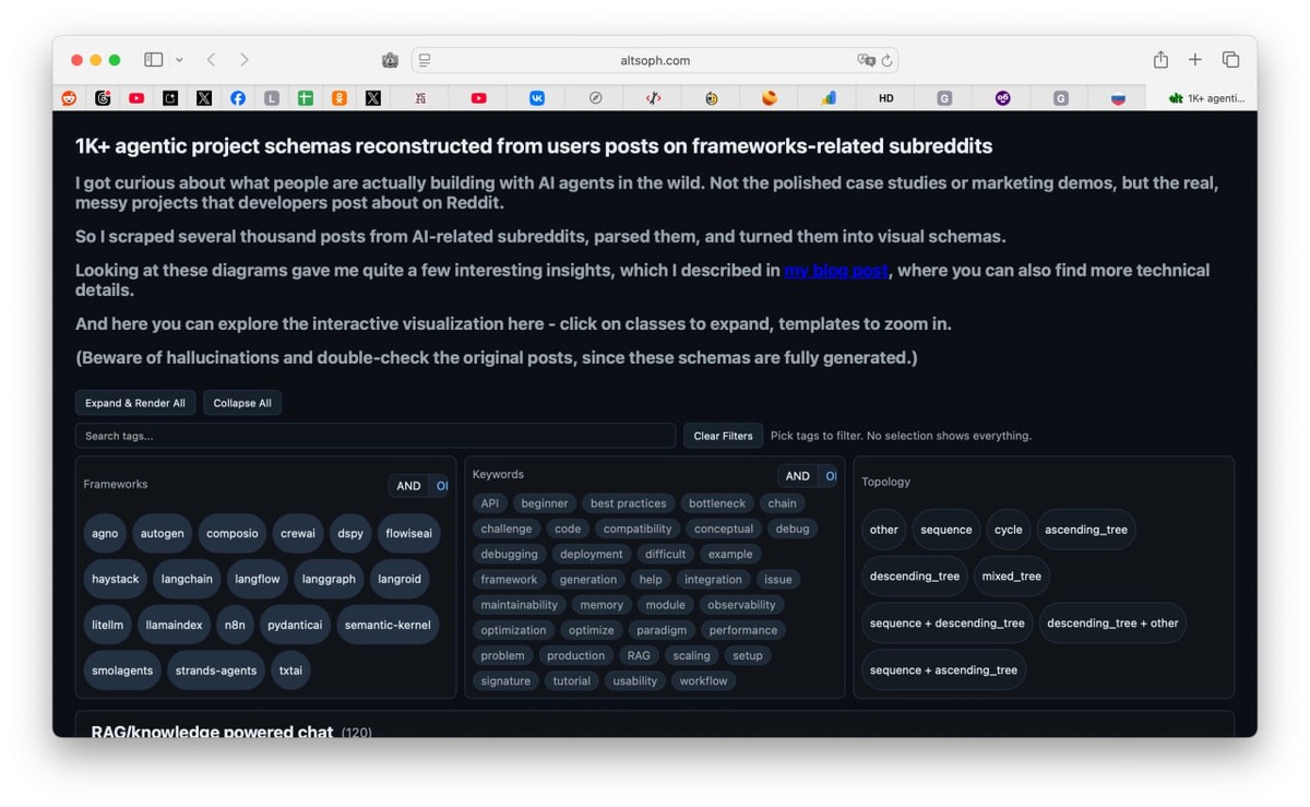 Знаете что это? 1K+ agentic project schemas reconstructed from users posts on frameworks-related subreddits. Если вы не поняли - смело листайте дальше. Скажу вам честно, я сам до конца не понимаю прикладное применение ИИ- агентов, но по этой ссылке их 1000+. Русский ИТ бизнес