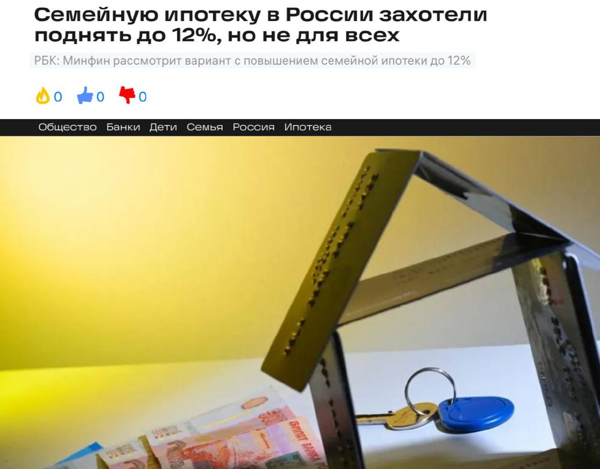 Привет, друзья! Сегодня мы поговорим о том, как изменение ставок по семейной ипотеке может повлиять на жизнь обычных семей. Представьте себе молодую семью, которая мечтает о детях. Они обсуждают, сколько детей им хотелось бы иметь, и как они смогут обеспечить им достойное будущее. И вот, новость о том, что ставку по семейной ипотеке хотят повысить, заставляет их задуматься: как это повлияет на их планы? Согласно сообщениям СМИ, ставку по семейной ипотеке хотят повысить до 12% для семей с первым ребёнком, до 6% — для семей со вторым ребёнком и до 4% — для семей с третьим ребёнком. Это означает, что семьи с несколькими детьми получат значительную поддержку от государства. В Минфине полагают, что такой подход сделает господдержку более адресной и позволит «усилить демографический эффект». Но что это значит для обычных людей? Для многих семей, которые хотят иметь детей, но боятся, что не смогут обеспечить им достойное будущее, такие изменения могут стать решающим фактором. Они смогут больш