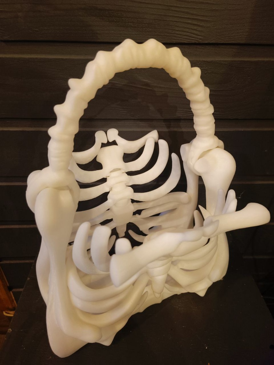 Недавно я взяла на заказ необычную идею: распечатать на 3D-принтере сумку 🛒 из пластика 🛒 для прекрасной девушки Анюты. ✨ Задача была не просто сделать аксессуар, а создать нечто уникальное и запоминающееся — креативная вещь, которая будет говорить сама за себя. Сумка в виде скелета, с характерной детализацией, способной «погреметь» — эффект косточек, который точно удивит и порадует обладательницу. ✨ Я подобрала для печати пластик такой цветовой гаммы, чтобы максимально соответствовать естественным оттенкам костей. 🦴 В процессе настройки принтера учитывались тонкости по детализации: — всё передано с высокой точностью. 🧭 После печати детали были аккуратно собраны в цельную композицию. 🧩 Сумка «гремит» как косточки, этот звук добавляет образу немного духа готики и таинственности. 👻 Результат превзошёл ожидания: получилась эксклюзивная сумка, которая привлекает взгляды 👀 и вызывает разговоры 💬. Цвет подобран так удачно, что изделие выглядит дороже своей реальной стоимости. 💰 Д