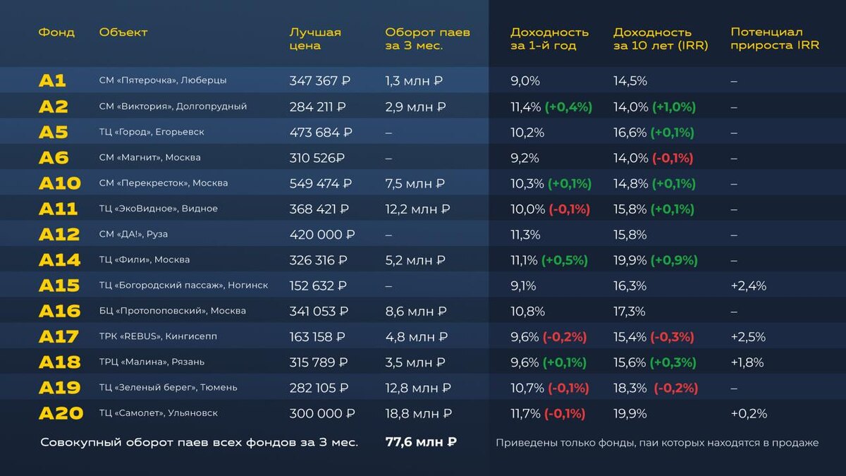 Вторичный оборот паев фондов на 26.09.2025 г. ➡️ Актуальные цены вы найдете в личном кабинете, раздел «В продаже». 🔸 Доходность зависит от цены пая конкретного предложения 🔸 Количество доступных паев ограничено Как происходит расчет показателей, объяснили здесь. — * Настоящее предложение не является публичной офертой #best