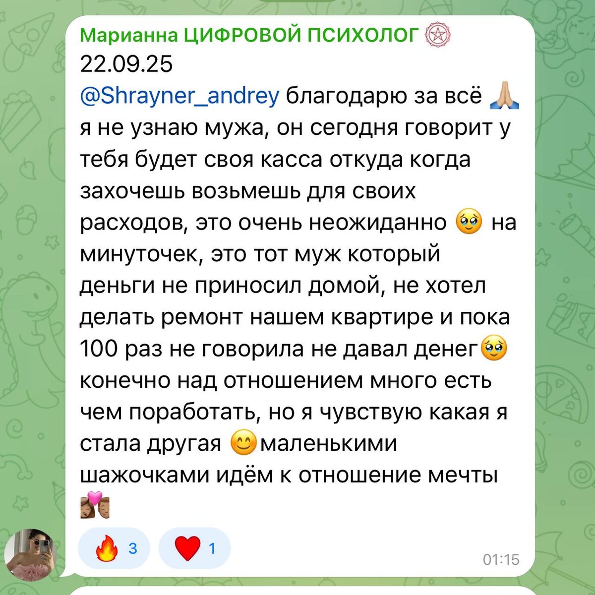 🔹А в-третьих, тебе не нужно идти одной. Кураторы читают записи, мягко подмечают твои успехи: «Посмотри, как смело ты вчера сказала мужу о своих