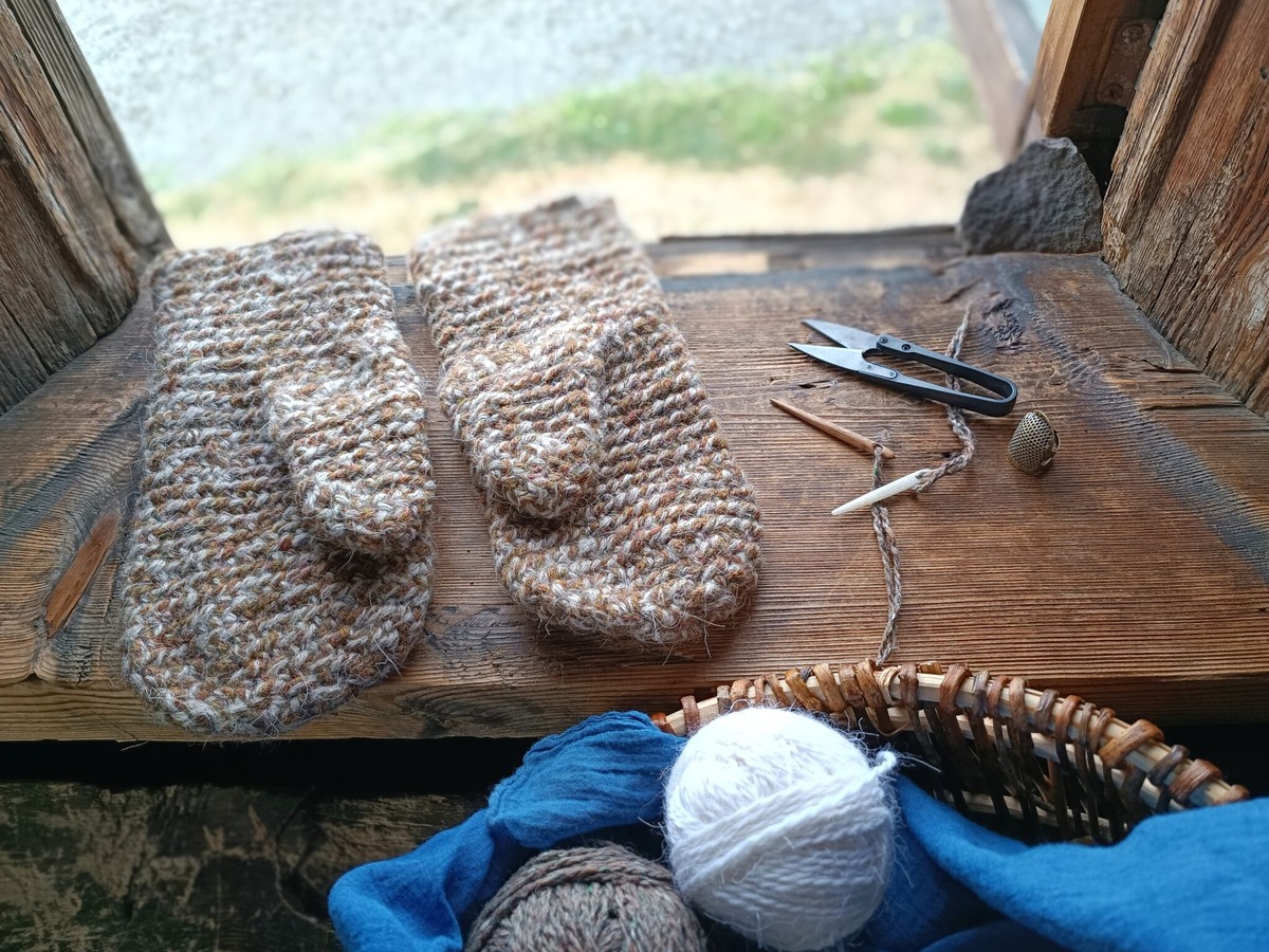 Традиционное ремесло освоила редактор спецпроектов сайта «Республика» Елена Фомина. В августе она работала в музее-заповеднике «Кижи»: вязала иглой и рассказывала туристам о народных промыслах. В карельских деревнях вязали рыбацкие рукавицы одной иглой. Это ремесло Елена Фомина демонстрировала туристам на «Ожившей экспозиции» музея «Кижи». Этой музейной программе уже более 30 лет: мастера в традиционных костюмах демонстрируют заонежские ремесла — плотницкое и кузнечное дело, берестоплетение, ткачество, вышивку, вязание, крестьянский быт 19 века — сеем рожь, стрижем овец, топим самовар щепками. «Вязание одной иглой в северных деревнях было занятием исключительно мужским. Промысловая магия: рука женщины не должна касаться рыбацкого инструмента. К овечьей шерсти добавляли конский волос: так варежки сильнее кололись, разгоняя кровь — меньше риск отморозить руки. Прочные, служили долго благодаря плотному переплетению нитей. А если протрутся, то не распустятся, как современное вязание. Зашто