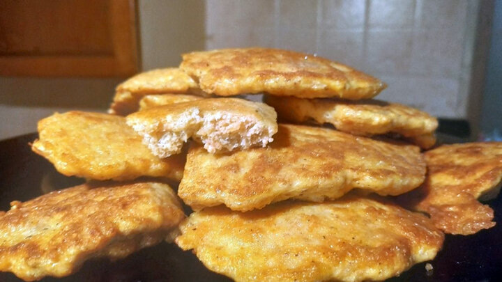 ✔ 400 г икры любой рыбы (сырой или замороженной); ✔ Яйца – 2 шт.; ✔ Псиллиум – 1 ст. л.; ✔ Соль, перец – по вкусу; ✔ Масло растительное (для жарки) – 2 ст. л.. Купил сегодня свежую икру - из белого амура (но может быть и икра карпа, трески или другой рыбы). Вместо муки взял столовую ложку без горки псиллиума, смешал с икрой, яйцами, посолил-поперчил. Дал постоять массе минут 15. Псиллиум разбухает и хорошо связывает массу, загустевает. А затем выкладывал ложкой на смазанную маслом сковороду. Минуты по три с каждой стороны на маленьком огне, прикрывал крышкой. Если разломить «лепёшку», икринки должны побелеть. Перед употреблением можно сбрызнуть (по желанию) лимонным соком. Готовые лепешки можно замораживать, а потом доставать по мере необходимости. Я ел, завернув в листья салата. КБЖУ на 100 г – 182/21,4/9,5/1,7. P.S. Если боитесь жарить, можно запечь в духовке. Тогда жирность и калорийность немного снизятся. Рецепт на странице Автор рецепта – Al Sheva Расчёт КБЖУ сделан с помощью Tele