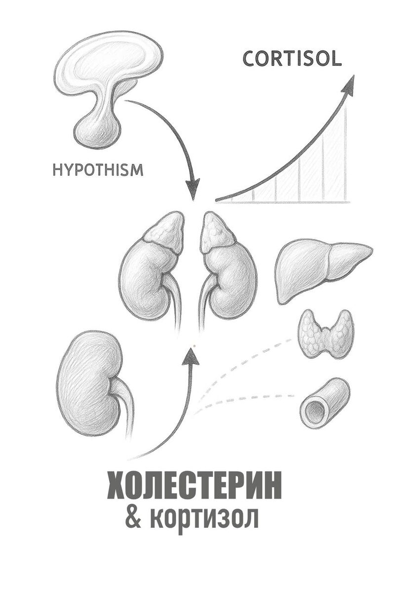 Знаете, с холестерином всё не так просто, как кажется на первый взгляд. Мы привыкли винить питание или печень, но на самом деле большую роль играет стресс. Когда организм живёт в режиме «бей или беги», кортизол как главный гормон стресса поднимается, и вот тут начинается целая цепочка событий. Кортизол влияет на транспорт холестерина: он как будто мешает его нормальному движению и утилизации. Представьте, что холестерин - это пассажиры, а транспорт - это липопротеины. Кортизол создаёт пробку на дороге, и холестерин буквально «застаивается». Но это ещё не всё. Для нормального обмена жиров нам нужны активные гормоны щитовидной железы, особенно Т3. Если их мало при гипотиреозе (даже при субклиническом), например, то скорость обмена веществ падает, клетки меньше используют холестерин, и уровень его в крови растёт. Кортизол здесь вмешивается хитро: при хроническом стрессе он может снижать чувствительность гипофиза к тиреотропному гормону (ТТГ) или мешать превращению Т4 в активный Т3. В ит