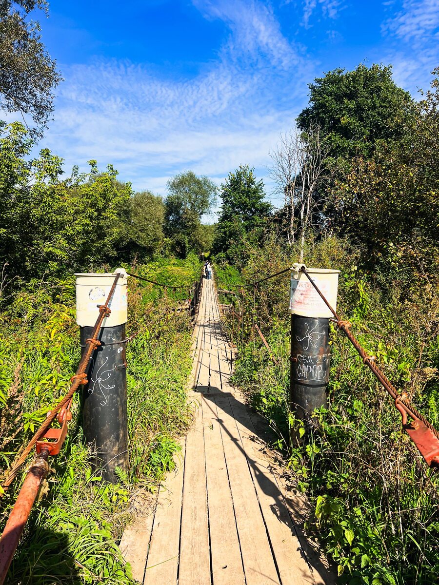 Подвесной мост в Юрятине Юрятино — совсем небольшая деревня на берегу Протвы, таких деревень по Центральной России тысячи, но не в каждой есть 📌подвесной мост 😀. Поэтому, мы и оказались здесь. Каждый год я пополняю свою 🗺коллекцию подвесных мостов, не помню уже откуда у меня появилось это увлечение, но уже много лет я нахожу его занятным. При планировании путешествий я ищу не только футбольные стадионы, но и подвесные мосты, кстати все посты собираю в один https://t.me/travellgide/3126. Что касаются деревни Юрятино, то мост через Протву очень живописный, как и сама река. Кстати, уже пару лет планирую пройти по реке на сапе или катамаране, но лето такое короткое… А еще, на окраине села стоит 📌Мельница купцов Бобровых, мы до нее не доехали, а вот вам очень рекомендую это сделать. #подвесноймост Подписывайтесь @travellgide || Мой выбор — путь