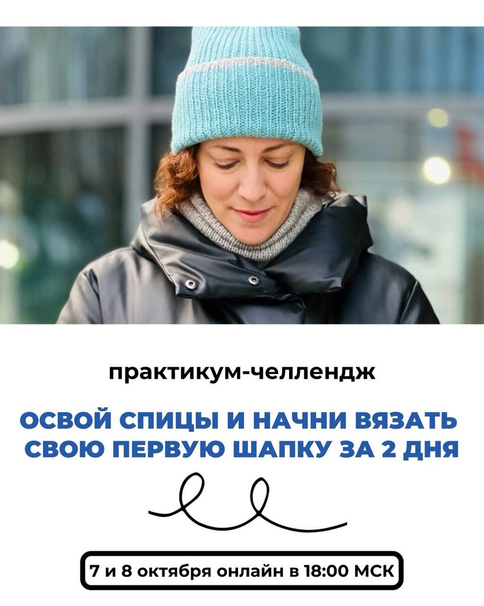 Огненный двухдневный онлайн-практикум 💯 Боитесь браться за спицы, ведь кажется, что это сложно? Долго? Хотите наконец-то подружиться со спицами и связать первые красивые изделия? За 2 дня на нашем онлайн-практикуме это реально 😇 Я, Яна Бардок, приглашаю вас повязать в РЕАЛЬНОМ времени. Мы подготовили практикум-челлендж «Освой спицы и начни вязать свою первую шапку за 2 дня», который проведёт вас от теории до первых петель под присмотром нашей чуткой команды 💛 Встречаемся 7-8 октября в 18:00 по мск онлайн 💡 Программа 👇 🟢 7 октября, эфир: «Главные ошибки новичков и как начать вязать спицами без провала» Стоит прийти, чтобы перестать допускать одни и те же ошибки, а еще научу разбираться в схемах и условных обозначениях, как выбрать пряжу и спицы для своей первой шапки. 🟢 8 октября, челлендж: «Вяжем первые петли и начинаем шапку на примере новичка из команды» Мы пригласим начинающую вязальщицу — она вяжет только самые базовые петли. И прямо в эфире мы начнём вместе с ней