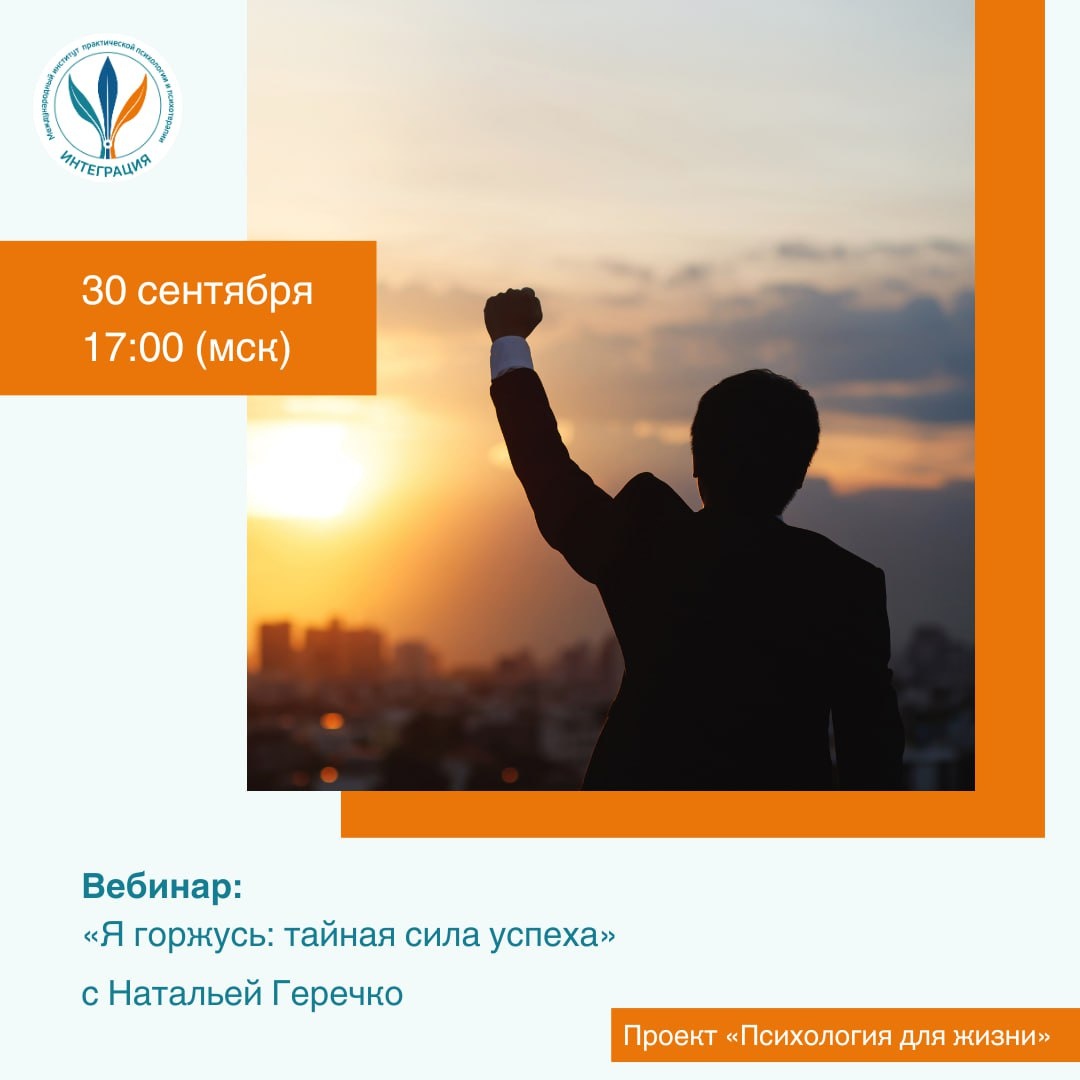 Чувствуете ли вы когда-нибудь, что чего-то не хватает, несмотря на достижения? Что успех не приносит ожидаемого удовлетворения? Возможно, вы недооцениваете одну из самых сильных, но редко осознаваемых эмоций — гордость. 💻На вебинаре «Я горжусь: тайная сила успеха» мы поговорим о том: ❓как чувство гордости формируется в детстве и развивается в течение жизни; ❓ почему гордость — не эгоизм, а мощный двигатель внутреннего роста и мотивации; ❓ как научиться гордиться собой и своими достижениями, несмотря на критику и сравнения; ❓ как использовать гордость как источник силы, уверенности и внутреннего успеха. 👩💻Ведущая: Наталья Геречко, практикующий психолог, специалист в телесно-ориентированном подходе, преподаватель МИППиП «Интеграция». 🗓🕔 30 сентября в 17:00 по мск в рамках проекта еженедельные вебинары по подписке «Психология для жизни». ➡️Необходима регистрация