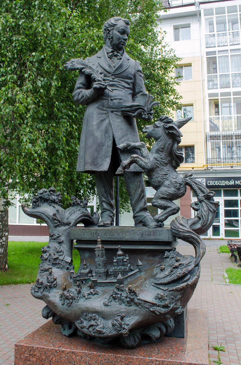 Сквер имени П.П. Ершова (Тобольск, координаты: 58.202350, 68.254321) В самом сердце Тобольска раскинулся удивительный сквер, посвящённый Петру Павловичу Ершову — талантливому поэту и автору бессмертной сказки в стихах «Конёк-Горбунок». Город неразрывно связан с именем писателя. Будущий сказочник появился на свет в деревушке неподалёку, в 1815 году. В 1825 году семья Ершовых переехала в Тобольск, где юный Пётр получил образование. Позже, с 1836 года, Ершов преподавал в местной гимназии, а в 1857 году возглавил её. Знаменательным стал 1834 год, свет увидела сказка, покорившая сердца читателей. В 2008 году, приурочив открытие к 420-летию города, власти Тобольска создали уникальное пространство, где оживают герои любимой сказки. Центральным элементом сквера стал памятник Ершову, созданный талантливым скульптором Михаилом Переяславцем. Бронзовая композиция изображает молодого писателя с книгой и пером, у ног которого преданно стоит Конёк-Горбунок. По территории сквера расселились лю
