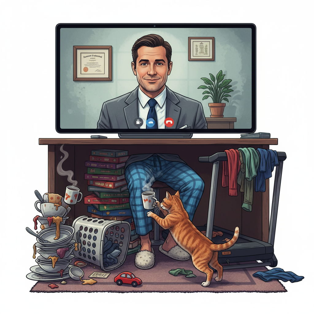 Отказ от ответственности: Данная статья является сатирическим произведением. Автор не несёт ответственности за то, что ваш кот станет звездой корпоративного чата, за раскрытие вашей тайной жизни через случайно расшаренный экран или за внезапное повышение после того, как ваше задумчивое мычание приняли за гениальную стратегическую мысль. Любое сходство с вашим последним звонком, где вы сорок минут смотрели на собственное лицо, является абсолютно преднамеренным.