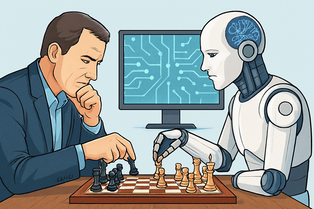 Когда-то шахматы считались “игрой богов”, требующей недосягаемого уровня интеллекта. Но с приходом компьютеров ситуация изменилась. 🔹 Первая победа машины над человеком В 1950-е годы появились первые шахматные программы, но они играли очень слабо. Всё изменилось в 1997 году, когда суперкомпьютер Deep Blue от IBM победил чемпиона мира Гарри Каспарова. Это событие стало переломным моментом в истории технологий. Каспаров позже признавался, что во время партии ему казалось, будто против него играет не просто программа, а какой-то чуждый интеллект, обладающий собственным сознанием. Для многих это стало символом встречи человечества с новой формой разума. 🔹 Современные ИИ-программы Сегодня движки вроде Stockfish или AlphaZero играют на уровне, недостижимом для людей. Интересно, что AlphaZero обучился шахматам всего за несколько часов, играя сам с собой, и выработал стиль, похожий на “творческий”: жертвы фигур ради долгосрочной позиции, неожиданные комбинации. 🔹 Что это значит для нас