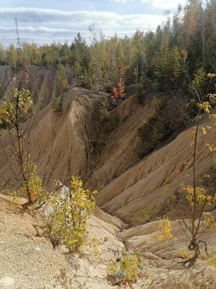 В Липецке есть карьер где раньше добывали известняк, читала что он долгое время был закрыт, но вот в последнее время все чаще его показывают по местному телевидению , как оригинальное место для экскурсий. Давно собиралась туда наведаться и вот выдалась чудесная погода и мы отправились на поиски этого как пишут инопланетного объекта. Нашли, прежде немного поплутав. Карьер большой, мы увидели его небольшую часть с верху, так как набрели на тропинку которая вела к карьеру по верху, но можно было идти и по низу, но там далеко не пройдешь, просто непроходимый бурелом. Виды меня просто впечатлили и сама природа осенняя очаровательна и горы известковые смотрятся здорово, возможно фото снизу были бы лучше, но спуститься уже не было возможности. По тропинкам которые проходят на верху где мы находились проводят мотокроссы , даже ленточки остались, сложный маршрут, как они только тут ездят, пройти то иногда сложно. Посмотрите еще фото от туда. А это какие виды, просто залюбуешься, взг