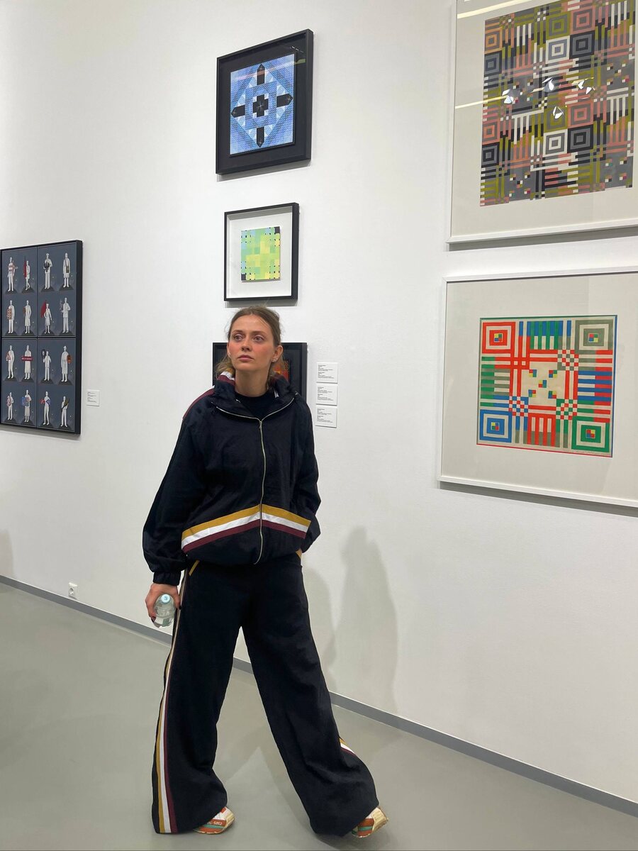 Вчера на VIP-открытии новых выставок в МАММ. Осталась под впечатлением от экспозиции современного художника Владимира Грига! Сначала написать картину в стиле советской иллюстрации акрилом, а сверху вышить ее стеклярусом.. Браво! На мне костюм SCHUMACHER из хлопковой ткани с «жатым» эффектом из нового дропа URBAN DROP FW25