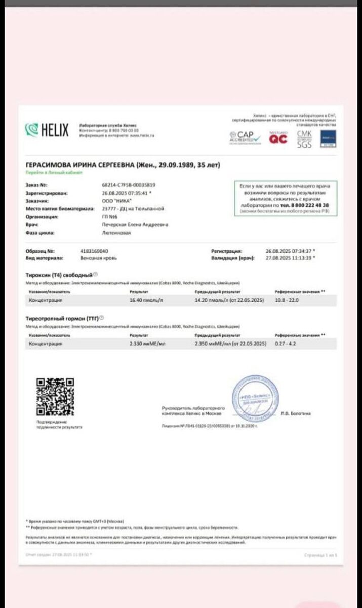Ирина разбор вашего анализа и небольшой комментарий по УЗИ. Т4 у вас оптимум и тут можно сказать, что все хорошо. Но при этом ТТГ у вас, чуть ниже, но не на много, ближе к балансу. Что такое ТТГ - тиреотропный гормон, тиреотропин, тиротропин – все это названия одного и того же гормона. Он вырабатывается гипофизом и является основным регулятором работы щитовидной железы. 🤩Но не является гормоном щитовидки. Главная функция – воздействие на синтез трийодтиронина (Т3) и тироксина (Т4). Важно понять, что плох как высокий уровень ТТГ , так и низкий относительно возраста. Количество тиреотропного гормона будет зависеть от выработки его в гипофизе. 🤩Ваш оптимальный уровень ТТГ, согласно референсам из анализа- 2,235, у вас 2.230. К большому сожалению у вас нет свободного Т3, чтоб видеть как, Т4 конвертирует Т3. Но судя по тем анализам, что есть то, предлагаю, что у вас легкая дисфункция щитовидной железы. 🤩Комментарий по УЗИ. Вам ставят АИТ, запомните это не болезнь, это состояние органи