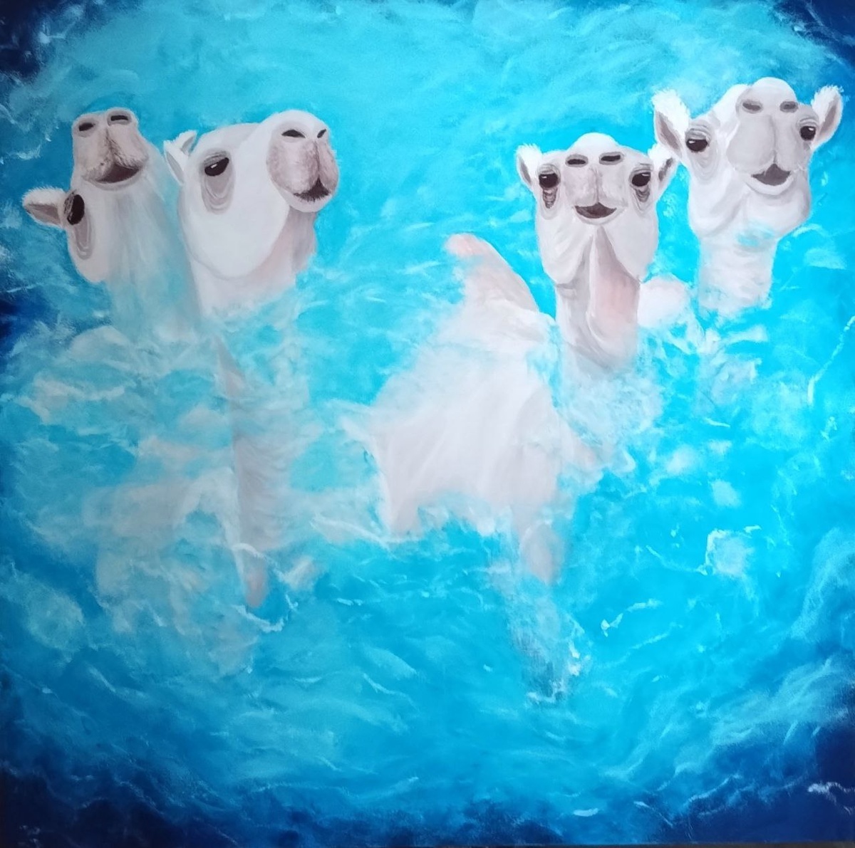 🐪✨ Небесный караван ✨🐪 Представьте: верблюды решили, что пески пустыни — это слишком банально. И отправились… в небо! 🌥 Теперь их путь — не среди барханов, а по облачной тропе, лёгкой и бесконечной. Белые силуэты будто растворяются в воздухе, шагая туда, где мечта не знает границ. А вы уже нашли свою дорогу выше горизонта? 😉 Поделитесь в комментариях 👇 #наив #современноеискусство #верблюд #облака #небо #живопись #анимализм #абстракция #картиныНины
