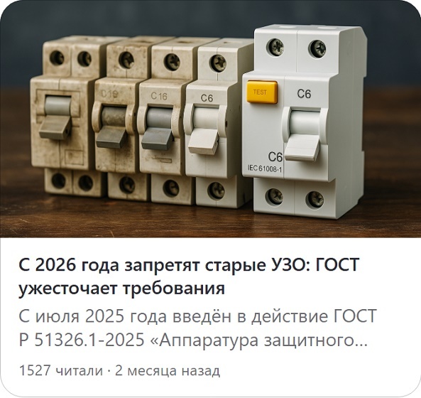 На канале Эридан. Гуру в электрике 24 июля 2025 г. опубликована следующая статья: Название и содержание статьи свидетельствует о некомпетентности лица, её подготовившего. Рассмотрим статью более подробно: Автор указал в статье ГОСТ Р 51326.1–2025, который введён в действие, цитирую: «с июля 2025 года», «зарегистрирован Росстандартом и вступает в силу для обязательного применения с 1 января 2026 года». Возникают естественные вопросы: с которого числа действует новый ГОСТ Р 51326.1–2025, где опубликована информация о регистрации стандарта? На сайте Росстандарта читаем официальную информацию: Иными словами, Рсстандартом зарегистрирован только ГОСТ Р 51326.1–99, который давно отменён: Автору статьи был задан вопрос: Однако ответа на мой вопрос до сих пор не последовало. По информации Росстандарта ГОСТ Р 51326.1–99 был заменён ГОСТ IEC 61008-1–2012. В настоящее время действует ГОСТ IEC 61008-1–2020: Действующий ГОСТ IEC 61008-1–2020 не пригоден для использования. Стандарт следует переиздат