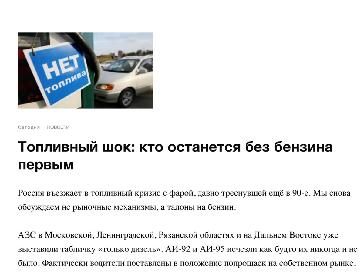 Минэнерго в закрытых совещаниях уже прорабатывает «квотирование» поставок топлива на федеральном уровне. Суть схемы — приоритет отдаётся военным, МЧС, скорой помощи и аграриям. Для обычных сетевых АЗС в регионах могут ввести лимиты — фиксированный объём поставок в сутки. Это по сути «скрытая талонная система», только без бумажек. По нефтяникам идёт жёсткая неофициальная директива «не раскачивать экспорт». Несколько крупных игроков получили сигнал снижать экспортные заявки на дизель и бензин, чтобы удержать внутренний рынок. Но у компаний свой интерес: экспорт идёт по более выгодной цене, поэтому сопротивление уже есть. Самые уязвимые... Подробности: https://financeanalitics.ru/tpost/8ubbngce11-toplivnii-shok-kto-ostanetsya-bez-benzin