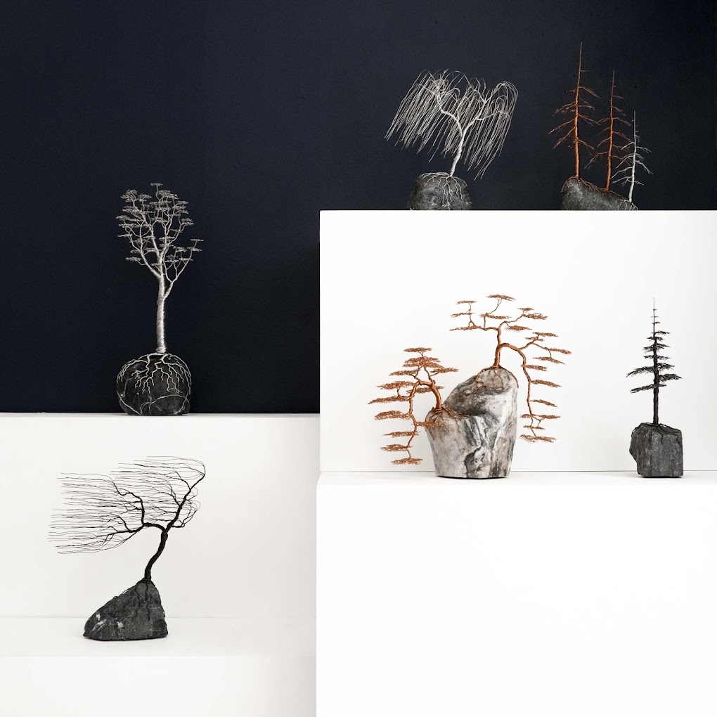 Мы рады представить вам уникальный бренд La foret imaginaire из Франции. Основатель и художник Джеффри Габриэль творит изящные скульптуры, объединяя легкость металлической проволоки и фактурность натурального камня. Его работы отражают особые моменты жизни дерева, оживая играми света и тени. Джеффри живет и работает в Арле, вдохновляясь японским минимализмом и природой. В каждой скульптуре он стремится передать единственный миг жизни дерева, используя металл и камень, где камень является основой по цвету и форме, а металлическая проволока — материалом для дерева. Каждая скульптура — уникальна, полностью выполнена вручную, что придает им индивидуальность и неповторимость. "Выбирая камень, я рассматриваю его рисунок и рельеф и уже представляю себе, каким будет дерево. Так постепенно, объединяя все мои творения, образуется Воображаемый Лес". Джеффри Габриэль В своей мастерской Габриэл
