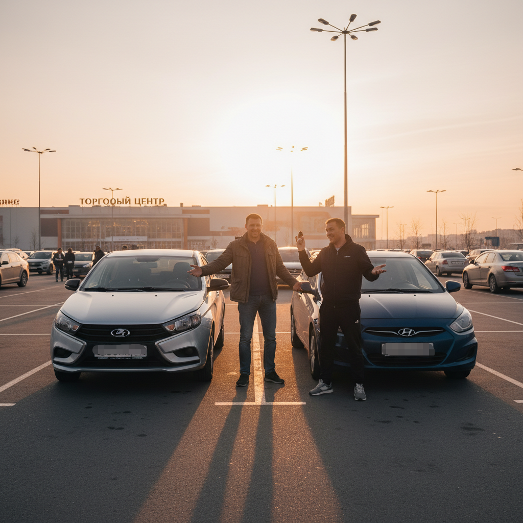 Парковка у торгового центра вечером — идеальное место для наблюдений. Вот рядом в ряд встают два автомобиля: Lada Vesta и Hyundai Solaris. Их владельцы — соседи по району, давно знают друг друга и любят подшутить. — «Ну что, опять подвеску менял?» — усмехается хозяин Соляриса, доставая пакеты из багажника.
