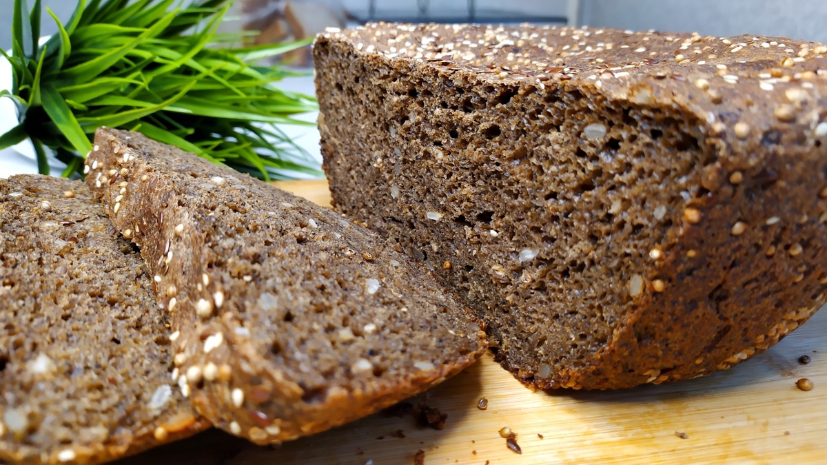 Всем привет! Сегодня приготовим ароматный, натуральный и очень вкусный черный хлеб со злаками. За основу я взяла рецепт бородинского хлеба, переделала его под себя и максимально упростила. А сегодня поделюсь им с вами. Такой хлеб получится абсолютно у всех! Вода 500 мл Мука ржаная 200-250 г Мука пшничная 300 г Солод 40 г (3 ст.л.) Сахар 50 г (2 ст.л.) Соль 10 г (1 ч.л.) Дрожжи 10 г (2 ч.л.) Масло 3 ст.л. Семена подсолнечника 50 г Семена льна 20 г Кунжут 10 г Кориандр 8 г Для начала нужно заварить солод. Порошок заливаю кипятком (200 мл) и оставляю постоять 10 минут. Именно солод придаёт хлебу тот самый вкус Бородинского. Ферментированный солод продаётся на маркетплейсах. Через 10 минут к солоду добавляю сахар, соль и воду комнатной температуры (300 мл). Нужно чтобы смесь была чуть тёплой. Всыпаю сухие дрожжи и различные семена. У меня сегодня семена подсолнечника, кунжутные семечки и семена кориандра. Можно использовать семена льна, семена тыквы, даже орехи. Затем добавляю ржан