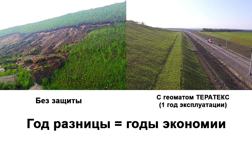 Что происходит без защиты? ✅дожди размывают склон, ✅появляются овраги, ✅каждый сезон нужны новые ремонты. Что происходит с геоматом ТЕРАТЕКС TMAX или VMAX? ✅грунт остаётся на месте, ✅развивается прочная растительность, ✅откос работает десятилетиями без вмешательства. Преимущества: ✅химическая стойкость (pH 4–10); ✅температурный диапазон от -50 до +50 °C; ✅экономия на инертных материалах и ремонтах. Вывод: один рулон геомата ТЕРАТЕКС дешевле, чем ежегодный ремонт откосов. Подробнее в статье на сайте.