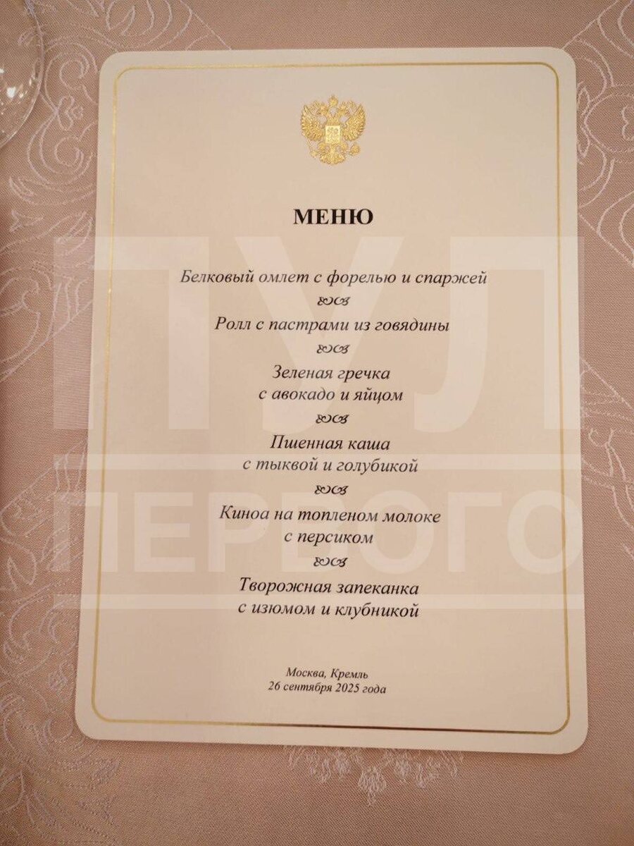 Меню рабочего завтрака Лукашенко и Путина в Кремле Фото: "Пул Первого" @SPUTNIKBY
