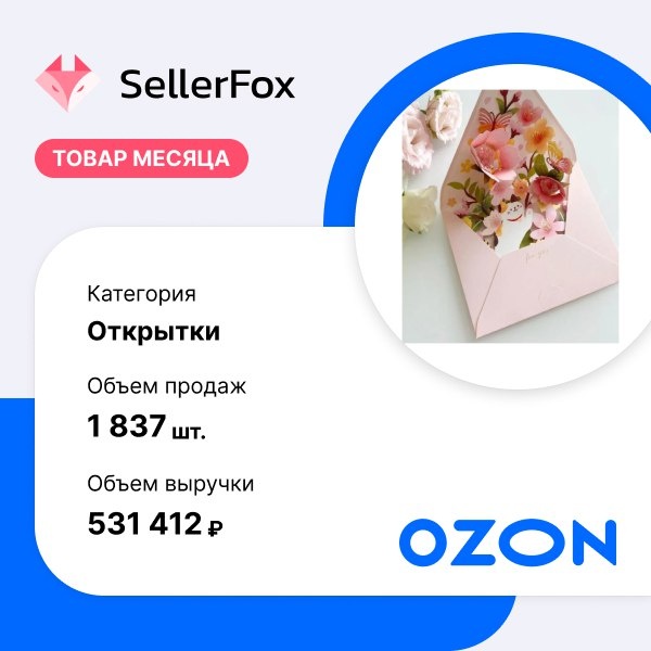 Ценный подарок. Подарочный конверт стал лидером по количеству продаж в категории "Открытки" на Ozon. За последние 30 дней товар приобрели более 1,8 тысяч раз на общую сумму свыше 530 тысяч рублей. Спешно подбирают подарки сейчас ко Дню воспитателя и ко Дню учителя. По данным аналитиков, 3% россиян планируют потратить на подарок ко Дню учителя сумму до 3 тысяч рублей. Букет остается главным подарком (72% опрошенных дарят педагогам цветы). 47% респондентов выбирают в качестве подарка сертификаты и различные подарочные карты и вот здесь как раз пригодится подарочный конверт.