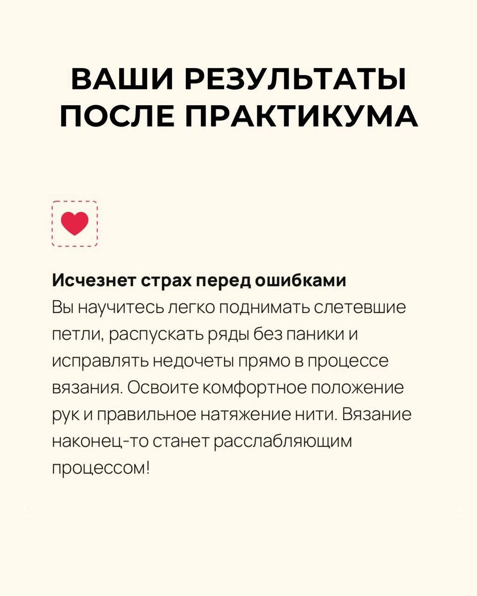 Уже в начале октября мы покажем, как вязать шапку в режиме реального времени, и мы верим — этот практикум изменит ваше отношение к вязанию навсегда! 😝🎁 Представьте, как страх перед ошибками просто таит, а в голове проясняется вся логика вязания — шаг за шагом вы научитесь создавать свою идеальную шапку и почувствуете настоящую уверенность в технике вязания по кругу🎓 🙂 Онлайн-практикум «Освой спицы и начни вязать свою первую шапку за 2 дня» — ваш первый шаг к тому, чтобы превратить вязание из загадки в увлекательное и понятное творчество. Готовы удивить себя? Скорее регистрируйтесь и ждём вас 7 и 8 октября в 18:00 по Москве❤ Мы с вами!