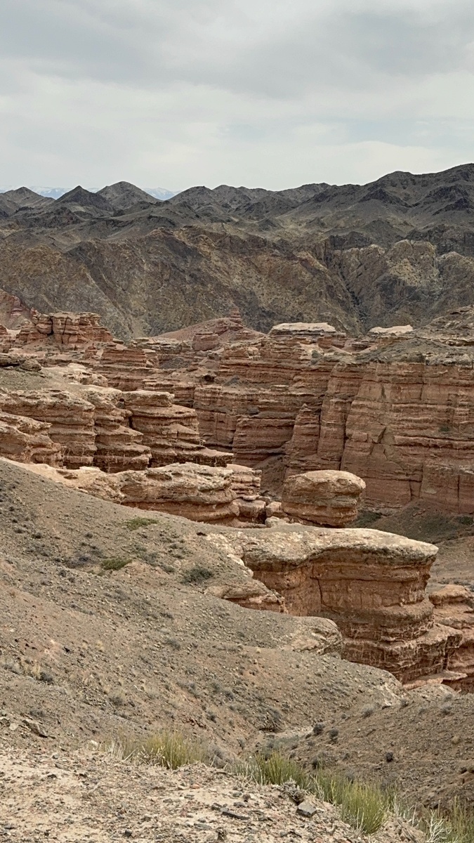 Утро было свежим и немного ветреным. Мы отправились в путь рано, чтобы успеть встретить первые солнечные лучи в каньоне. Машина долго ехала по степям, и вот впереди показались причудливые силуэты красных скал — словно стены древней крепости. Когда мы спустились вниз, нас встретила тишина, нарушаемая лишь эхом наших шагов. Скалы поднимались над нами, напоминая башни и крепостные стены. Маленький путешественник с белыми волосами и длинным шарфом первым достал фотоаппарат и начал снимать всё подряд: каждую трещинку, каждый изгиб камней. Он выглядел очень серьёзным исследователем. Другой наш герой, с чёрной шляпой и озорной улыбкой, прятался в щели между камнями, выглядывал то справа, то слева, будто играл в прятки с самим каньоном. А его товарищ в клетчатом костюме поднялся на выступ и позировал, словно настоящий модельер на подиуме из песчаника. Мы смеялись, фотографировались и не могли поверить, что находимся среди таких фантастических форм. Иногда скалы напоминали людей, иногда —