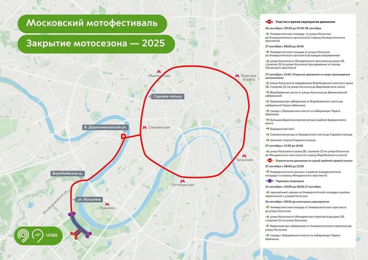 π§ ΠΠ²ΠΈΠΆΠ΅Π½ΠΈΠ΅ Π½Π° Π²Π½Π΅ΡΠ½Π΅ΠΉ ΡΡΠΎΡΠΎΠ½Π΅ Π‘Π°Π΄ΠΎΠ²ΠΎΠ³ΠΎ ΠΊΠΎΠ»ΡΡΠ° Π²ΡΠ΅ΠΌΠ΅Π½Π½ΠΎ Π·Π°ΠΊΡΠΎΡΡ. ΠΡΠΎ ΡΠ²ΡΠ·Π°Π½ΠΎ Ρ ΠΏΡΠΎΠ²Π΅Π΄Π΅Π½ΠΈΠ΅ΠΌ ΠΠΎΡΠΊΠΎΠ²ΡΠΊΠΎΠ³ΠΎ ΠΌΠΎΡΠΎΡΠ΅ΡΡΠΈΠ²Π°Π»Ρ. ΠΠ³ΡΠ°Π½ΠΈΡΠ΅Π½ΠΈΡ Π² ΠΎΡΠ½ΠΎΠ²Π½ΠΎΠΌ Π±ΡΠ΄ΡΡ Π΄Π΅ΠΉΡΡΠ²ΠΎΠ²Π°ΡΡ 27 ΡΠ΅Π½ΡΡΠ±ΡΡ, Π° ΡΠ°ΠΊΠΆΠ΅ ΡΠ°ΡΡΠΈΡΠ½ΠΎ 26 ΠΈ 28 ΡΠ΅Π½ΡΡΠ±ΡΡ. ΠΠΎΠ΄ΠΈΡΠ΅Π»ΡΠΌ ΡΠ΅ΠΊΠΎΠΌΠ΅Π½Π΄ΡΠ΅ΡΡΡ Π·Π°ΡΠ°Π½Π΅Π΅ ΠΏΠ»Π°Π½ΠΈΡΠΎΠ²Π°ΡΡ ΠΌΠ°ΡΡΡΡΡ. ΠΠΎΠ΄ΡΠΎΠ±Π½ΠΎΡΡΠΈ β Π² ΠΈΠ½ΡΠΎΠ³ΡΠ°ΡΠΈΠΊΠ΅.