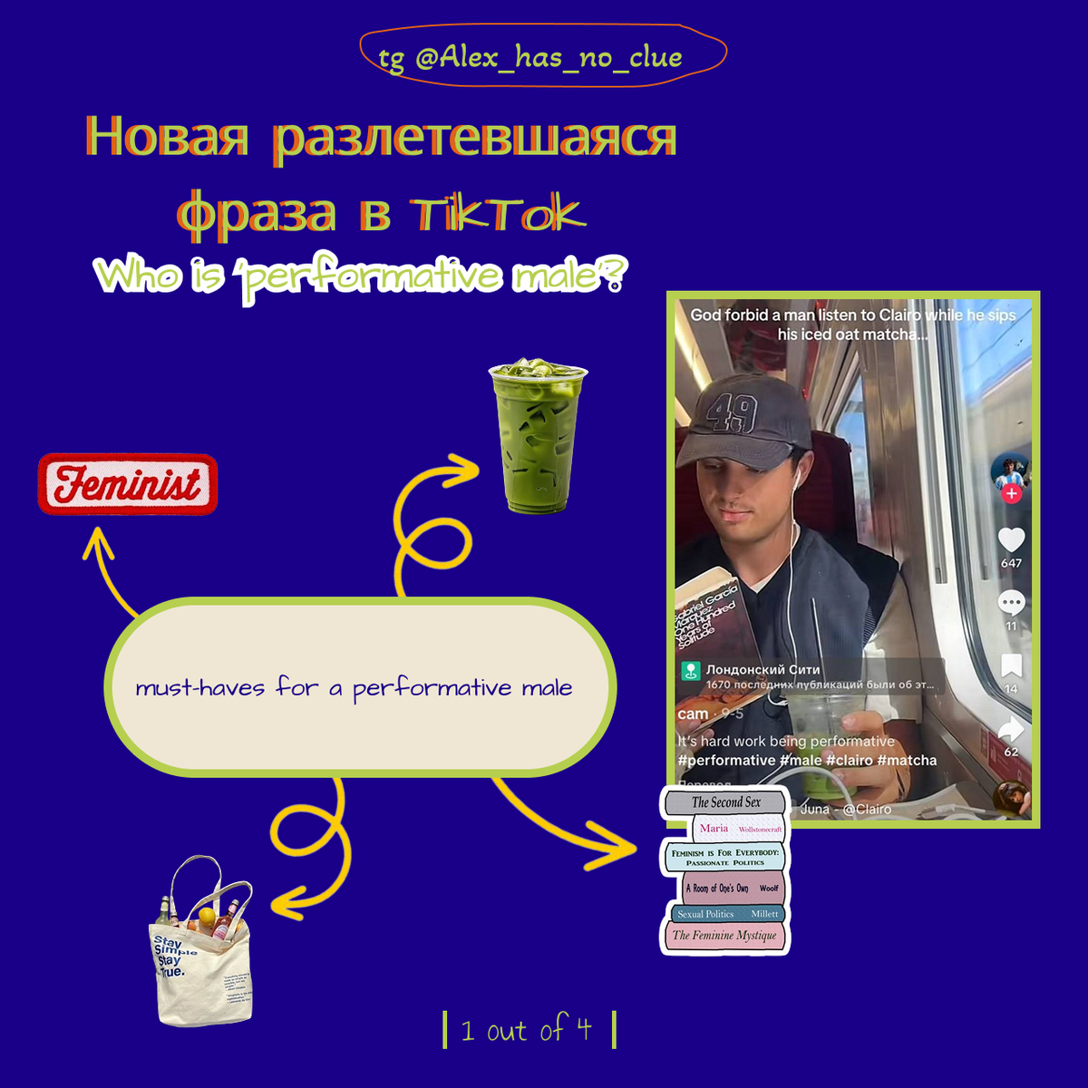 Вы уже встречали этого парня. В кофейне он не просто пьет кофе, а с умным видом листает «Второй пол» Симоны де Бовуар. В его инстаграме — фото с экологической сумкой-шопером (обязательно с забавным значком и Лабубу), кадры с котиками и цитаты о феминизме. Его плейлист наполнен нежным инди-попом вроде Clairo, а в руках почти всегда стаканчик с айс-матча на овсяном молоке. Перформативный мейл — это мужчина, который демонстративно перенимает «феминные» хобби, интересы и черты не из искренней страсти, а чтобы создать привлекательный образ в глазах женщин. Его действия — это не про внутренние убеждения, а про социальную выгоду, романтический или статусный капитал. Проще говоря, он играет роль «просвещенного, чуткого и современного» партнера. Как сказано в одном из определений: «Всё, что он делает, запощено и отмечено хэштегами, чтобы вы чувствовали себя тепло и безопасно». Феномен разделил соцсети на два лагеря. Одни видят в этом лицемерие и обесценивание реальных ценностей. Мол, «теперь д