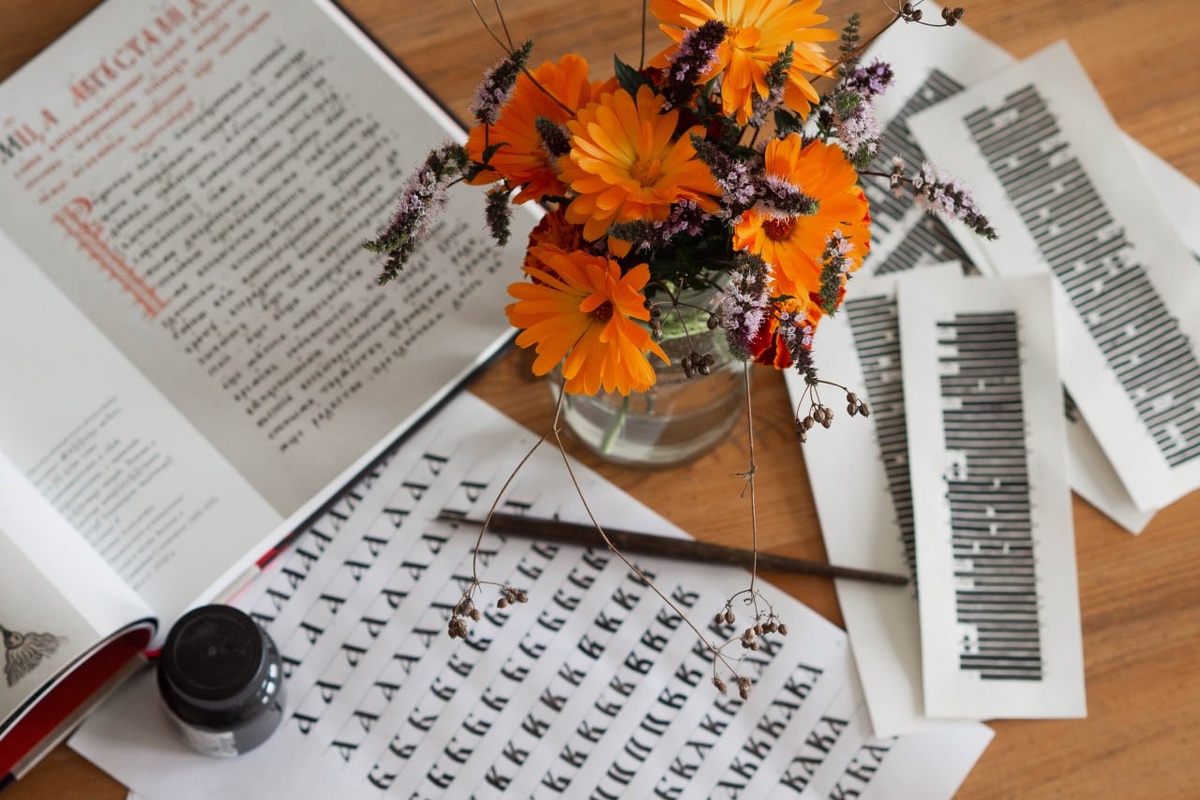 А у вас бывает? Когда осенью свет становится таким особенным, золотым и прозрачным, а воздух — холодным и звонким. И ты вдруг ловишь себя на мысли, что больше не хочешь никуда бежать. Хочется замедлиться. Свернуться калачиком в уютном кресле, заварить чашку чего-то согревающего и... взять в руки перо. Не для проекта, не для отчета. А просто так. Для себя. В такие моменты чернила на дне стеклянной чернильницы кажутся бездонным осенним небом. А перо — моим личным проводником в тишину. Когда выводишь букву за буквой, знакомый полуустав, весь внешний шум постепенно стихает. Тревоги и планы на завтра растворяются в ритме дыхания и скольжении пера по шероховатой бумаге. Это не просто письмо. Это самый честный разговор с собой. Это возможность укрыться текстом, как теплым пледом. Создать свое маленькое пространство, где нет места суете, а есть только ты и поток спокойствия, льющийся из кончика пера. На фото — осенний подарок от Натальи (курс "полуустав"). Мне кажется, в этих буквах живет