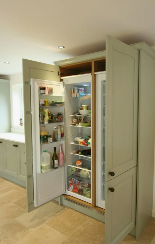 - Начните с холодильника. Дизайн кухни лучше продумывать уже после выбора конкретной модели встраиваемой техники. Это поможет избежать ошибок с размерами и техническими требованиями.
