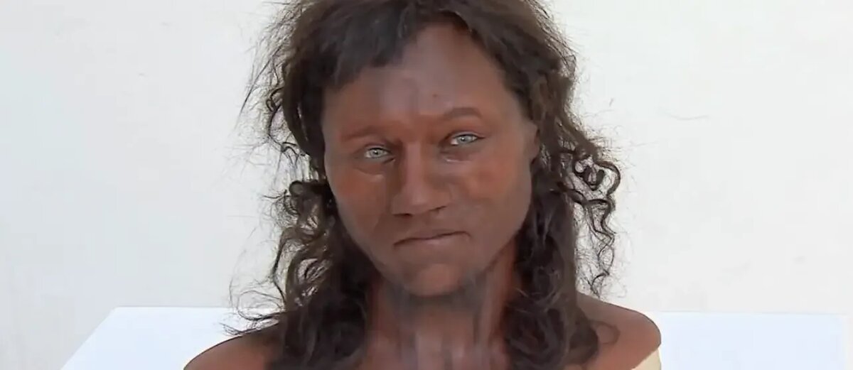 Реконструкция лица Чеддарского человека, выполненная специалистами из University College London, наглядно демонстрирует его облик: смуглое лицо с выразительными голубыми глазами и темными вьющимися волосами.