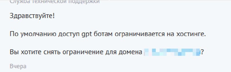 Оказывается, на некоторых хостингах по умолчанию доступ к нейросетевым ботам режется