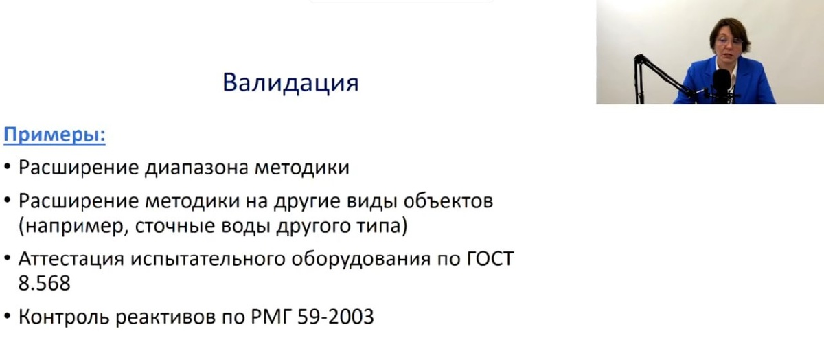 Кто-то спросил меня по поводу вот этого вебинара https://vkvideo.ru/video-127396992_456239283?list=ln-czFjSUJPByP9Aqhi4a Лектор говорит про валидацию реактивов, не ошибается ли она? может тут правильнее про верификацию реактивов говорить? Как видно на скриншоте из видео, Елена Юрьевна говорит про валидацию реактивов в контексте РМГ 59-2003. Напомню, что данная рекомендация касается использования реактивов с истекшим сроком годности. И РМГ 59-2003 действительно предлагает нам валидировать эти реактивы, то есть подтвердить, что для конкретного применения ( использования в данной контролируемой методике) эти реактивы ещё пригодны. Иначе как валидацией в рамках ГОСТ ISO/IEC 17025-2019 эту процедуру не назовешь. Хотя я сам не рекомендую продлять сроки годности реактивов, но в некоторых случаях это действительно выход.
