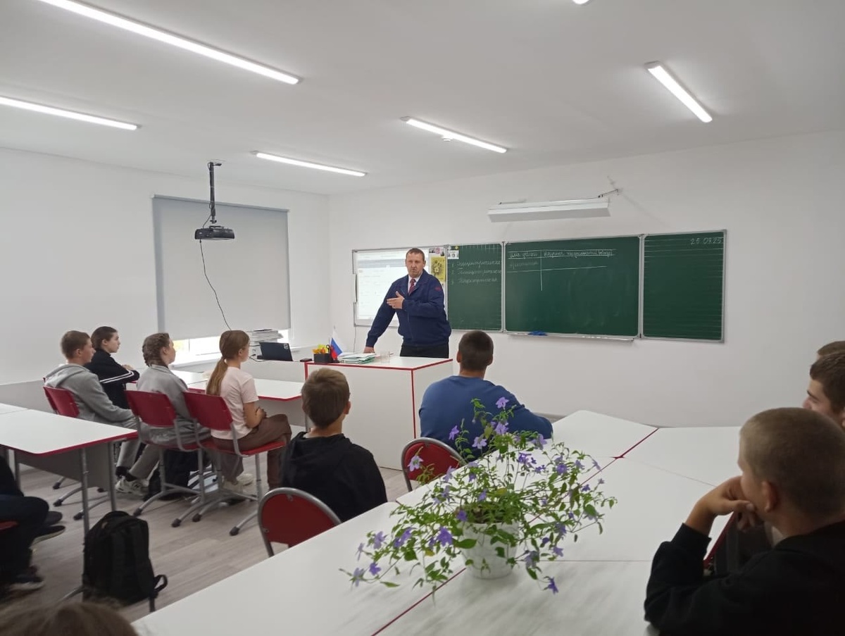 В рамках месячника «Уступи дорогу поездам» в Солонечно-Талинской школе опытный машинист электровоза Андрей Штыр встретился со учениками