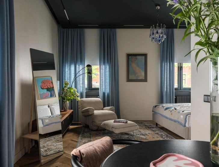 посмотрите как красиво и просто можно оформить интерьеры в квартие под сдачу в аренду посуточно 🌻 В Хамовниках (район Москвы) появилось место для тех, кто ценит современную культуру, ищет вдохновение и пространство, где можно замедлиться и насладиться тишиной. 22 art’a — это шесть апартаментов площадью от 22 до 55 м² в формате арт-пространств, спроектированных декоратором Юлией Голавской ❤️ Трости и гвозди