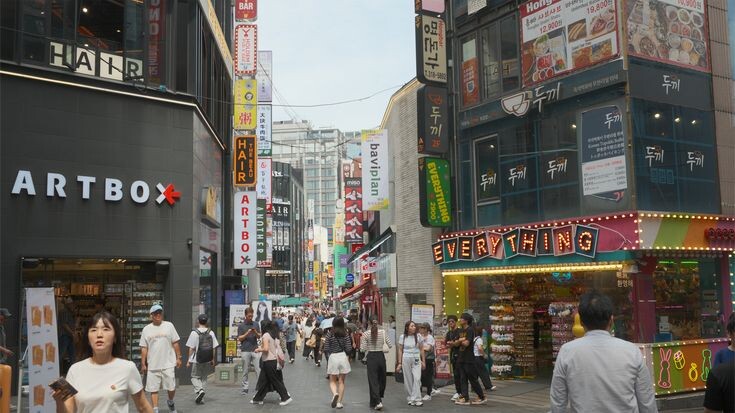 Решили снова поехать в Myeongdong на шопинг. Сегодня я наверно была не в духе, ведь наличие такого огромного количества людей в возрасте, стало меня сегодня по особому напрягать. Хотелось молодости и свежести, а не бабушку в зеленом наряде, похожую на брокколи. Выглядела она конечно очень интересон, с ног до головы зеленый цвет, розовые губы и золотые украшения, снова словно из картины. Еще пока ехали и видев большие головы некоторых людей, почувствовала себя Чендлером из сериала друзья. Приехав, мы проходили мимо стены на которой весело множество значков мишлена и решили там покушать. Нам повезло, мы не стояли в очереди, столов было огромное множество, как и людей. В меню было всего 5 блюд. Мы выбрали лапшу и о Боже, это было очень вкусно! А еще на столе лежало ведерко с кимчи, острым и вкусным - ложи сколько хочешь, в общем я нормально его так поела. Когда выходили, на улице уже собралась большая очередь. Дальше мы пошли гулять по шоппинг улице, зашли в магазин одежды TOPTEN, это что