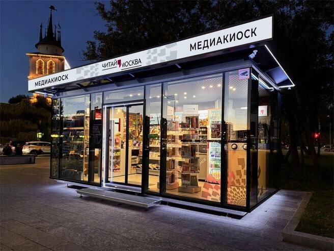Помните те самые ларьки с журналами из прошлого? ✨Они возвращаются! Только стали лучшей версией себя — теперь это медиакиоски, куда можно зайти, почитать книги и журналы, выпить кофе со снеками или мороженым. Первые медиакиоски установили на «Краснопресненской» и «Шаболовской». ✨Выглядит очень современно и удобно. Похоже на мини-магазин, где можно полистать прессу и даже зарядить телефон. ▶️ Ещё больше про Москву