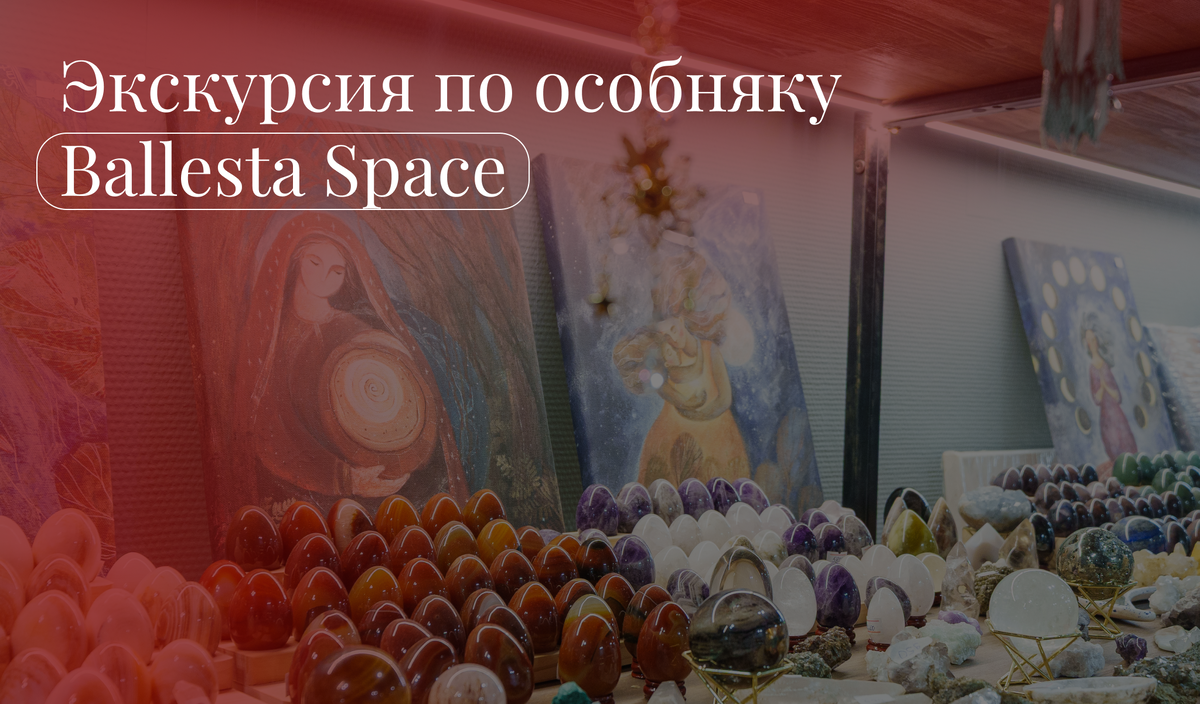 Точка входа — шоурум Ballesta Yoni Здесь началась история Ballesta Space. Коллекция сакральных украшений, минералов, йони-эгг и предметов силы. Часто именно здесь случается та самая встреча с камнем и путь внутренней трансформации. Из шоурума можно попасть в зал «Агат». Светлый, мощный, он словно создан для движения, звучания и свободы. Здесь проходят экстатик-денс, концерты, телесные и голосовые практики — пространство помогает энергии течь легко и естественно. В глубине первого этажа расположен зал «Красный Шатер». Это сокровенное место для женских встреч и глубоких практик. Здесь можно ощутить поддержку и доверие, позволить себе быть собой. Зал д