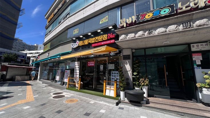 На сегодня у нас тоже был запланирован - «свободный» день, так как он был последним, мы планировали посетить места, которые находились неподалеку. Поэтому мы отправились в храм, который нашел муж. Мы шли пешком, оттого заглядывали по дороге в магазинчики, зашли в Дайсо и в продуктовый, в котором не были раньше. Зашли в кафе, где пообедали Бибимбапом, было вкусно. Так и дошли до места назначения. Храм оказался очень красивым и не большим, на нем были нарисованы картины, мотивы из жизни Будды, это самый расписной храм за нашу поездку! Мы немного походили по небольшой территории, сделали фотографии и собирались уходить, как…. нас остановила налысо бритая женщина, сначала издалека увидев ее, я думала что это монах. Она подарила нам веер, было очень неожиданно, я была тронута. Погода сегодня стояла очень жаркая, такой подарок был для меня знаком огромной заботы. Мы поблагодарили ее и ушли, к парку, который находился неподалеку. Случился хайкинг, сначала мы прошлись по простой тропе, в конце