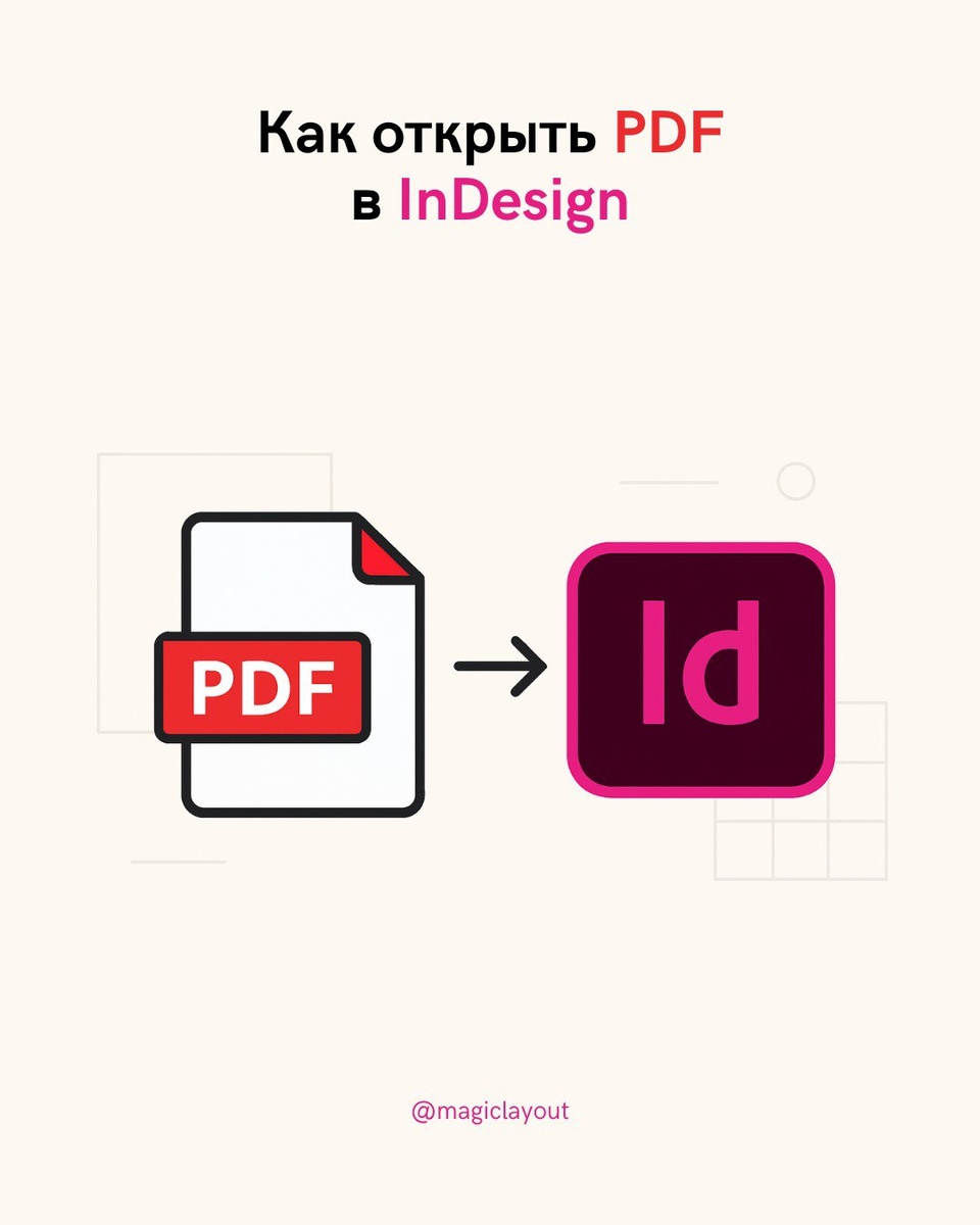 ΠΎΠ΄ΠΈΠΌΠΎΡΡΡ ΠΎΡΠΊΡΡΡΡ PDF ΠΏΡΡΠΌΠΎ Π² InDesign Π΄Π»Ρ Π΄Π°Π»ΡΠ½Π΅ΠΉΡΠ΅ΠΉ ΡΠ°Π±ΠΎΡΡ: Π΄ΠΎΠ±Π°Π²ΠΈΡΡ ΡΠ»Π΅ΠΌΠ΅Π½ΡΡ, ΠΏΠ΅ΡΠ΅ΡΠ°Π±ΠΎΡΠ°ΡΡ ΠΌΠ°ΠΊΠ΅Ρ ΠΈΠ»ΠΈ Π²ΡΡΡΠΎΠΈΡΡ ΡΡΡΠ°Π½ΠΈΡΡ Π² ΠΏΡΠΎΠ΅ΠΊΡ. Π Π°Π·Π±Π΅ΡΡΠΌ, ΠΊΠ°ΠΊ ΡΡΠΎ ΡΠ΄Π΅Π»Π°ΡΡ ΠΏΡΠ°Π²ΠΈΠ»ΡΠ½ΠΎ. π Π‘ΠΏΠΎΡΠΎΠ±Ρ ΡΠ°Π±ΠΎΡΡ Ρ PDF Π² InDesign 1. ΠΡΡΠ°Π²ΠΊΠ° PDF ΠΊΠ°ΠΊ ΠΈΠ·ΠΎΠ±ΡΠ°ΠΆΠ΅Π½ΠΈΡ (Place) Π InDesign Π½Π΅Ρ ΡΡΠ½ΠΊΡΠΈΠΈ Β«ΠΡΠΊΡΡΡΡ PDFΒ» Π½Π°ΠΏΡΡΠΌΡΡ. β’ Π§ΡΠΎΠ±Ρ Π²ΡΡΠ°Π²ΠΈΡΡ PDF, ΠΈΡΠΏΠΎΠ»ΡΠ·ΡΠ΅ΠΌ ΠΊΠΎΠΌΠ°Π½Π΄Ρ File β Place (Π€Π°ΠΉΠ» β ΠΠΎΠΌΠ΅ΡΡΠΈΡΡ). β’ ΠΡΠ±ΠΈΡΠ°Π΅ΠΌ Π½ΡΠΆΠ½ΡΠΉ ΡΠ°ΠΉΠ» PDF ΠΈ Π² Π΄ΠΈΠ°Π»ΠΎΠ³Π΅ ΠΌΠΎΠΆΠ½ΠΎ ΠΎΡΠΌΠ΅ΡΠΈΡΡ, ΠΊΠ°ΠΊΡΡ ΡΡΡΠ°Π½ΠΈΡΡ Π²ΡΡΠ°Π²Π»ΡΡΡ. β’ ΠΠ°Π»Π΅Π΅ ΡΡΠ»ΠΊΠ°Π΅ΠΌ ΠΏΠΎ ΡΠ°Π±ΠΎΡΠ΅ΠΌΡ ΠΏΠΎΠ»Ρ β ΠΈ ΡΡΡΠ°Π½ΠΈΡΠ° PDF Π²ΡΡΠ°Π½Π΅Ρ Π² ΠΌΠ°ΠΊΠ΅Ρ ΠΊΠ°ΠΊ ΠΊΠ°ΡΡΠΈΠ½ΠΊΠ°. π ΠΠ»ΡΡ: ΠΏΡΠΎΡΡΠΎ ΠΈ Π±ΡΡΡΡΠΎ. π ΠΠΈΠ½ΡΡ: ΡΠ΅Π΄Π°ΠΊΡΠΈΡΠΎΠ²Π°ΡΡ ΡΠ΅ΠΊΡΡ ΠΈ Π³ΡΠ°ΡΠΈΠΊΡ Π² InDesign Π½Π΅ ΠΏΠΎΠ»ΡΡΠΈΡΡΡ. 2. ΠΠΌΠΏΠΎΡΡ Π²ΡΠ΅Ρ