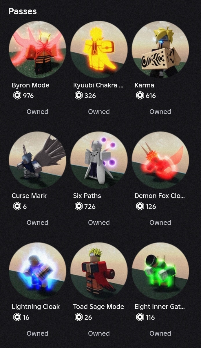После краткого описания первого этажа я перехожу ко второму. Второй этаж — этаж для тех, кто купил пассы за робуксы. Игрок может купить техники только из пасса, купленного ранее. Техники из других пассов купить невозможно. Всего пассов (за робуксы) в игре 14. Четырнадцатого (RikuRinn или Rikudo and Rinenngan) вы не найдете, так как он доступен для покупки (876 робуксов) в зимнее обновление до нового года. *** На втором этаже техники мощнее и сильнее, чем на первом. НО это зависит от техник определенного пасса. В других статьях я расскажу об этом подробнее. Благодаря техникам данного этажа были созданы известнейшие и сильнейшие комбо (комбинации), были созданы варианты в ближнем и дальних боях (про сет расскажу в другой статье). Только следует учесть, что в некоторых кланах, не игровые, а союзы игроков, некоторые техники запрещены. Например, щит из прошлой статьи запрещен абсолютно всеми кланами, поэтому следует учиться играть без него. Так же на этом этаже находятся два Сусаноо (