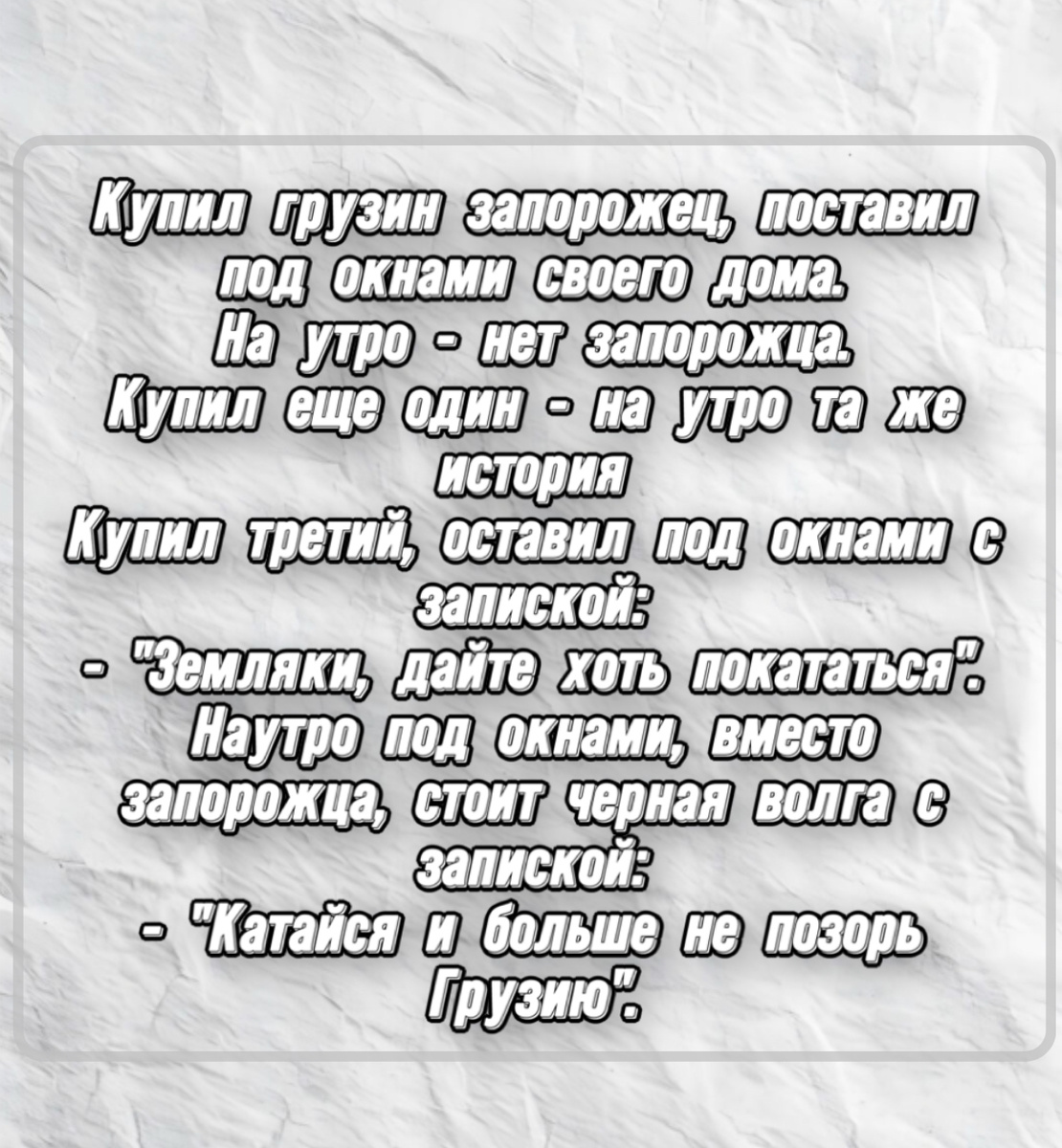 Собрали для вас коллекцию уморительных шуток — от школьного юмора до злободневных тем. Читайте и поднимайте настроение! 😄 --- Учительница в классе: — Вовочка, просклоняй глагол «голосовать». — Я голосую, ты голосуешь, он голосует, она голосует, мы голосуем, вы голосуете... — А как же «они»? — А они — срать на нас хотели! 😅 --- Пьяный пассажир садится в такси и командует: — Вези на Пушкина! Таксист неуверенно начинает: — Пушкин — сволочь, подлец, мерзавец... Пассажир перебивает: — Ты куда это? Мне на улицу Пушкина! 🚖 --- На экзамене по матанализу преподаватель спрашивает студента: — Что вы будете делать, если я попрошу найти сумму этого ряда? Студент мрачно отвечает: — Повешусь! Преподаватель кивает: — Верно, ряд расходится. 📚 --- 90-е были золотым временем. У меня были личные повара, пассивный доход, даже гигиеной занималась прислуга. А потом я подрос и пошел в детский сад. 👶 --- — Доктор, у меня насморк и нет сил! — Что ж, молодой человек, судя по всему, вы — слабак и