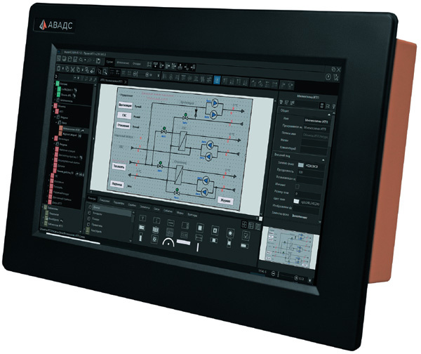 Панели оператора АСУ прошли долгий путь развития от простых кнопочных устройств с индикаторами состояния и ограниченной функциональностью до современных HMI-систем с сенсорным управлением, совмещающих в себе функции визуализации и ПЛК. А самые передовые модели теперь имеют на борту полноценную универсальную SCADA-систему. О таких панелях – АВАДС АСП – рассказано в статье. Требования к «железу» для комфортной работы в современных SCADA-системах достаточно высоки. Это является следствием их широкой функциональности, для реализации которой необходимо все больше вычислительных мощностей. Удобное создание мнемосхем, быстрый обмен данными с периферийными устройствами и системами хранения данных реального времени, сетевое взаимодействие с внешними приложениями и устройствами, генерирование отчетов и так далее – всё это ресурсоемкие функции, с большим аппетитом «пожирающие» производительность процессора, оперативную память, мощности графической подсистемы, пропускную способность и скорость дис