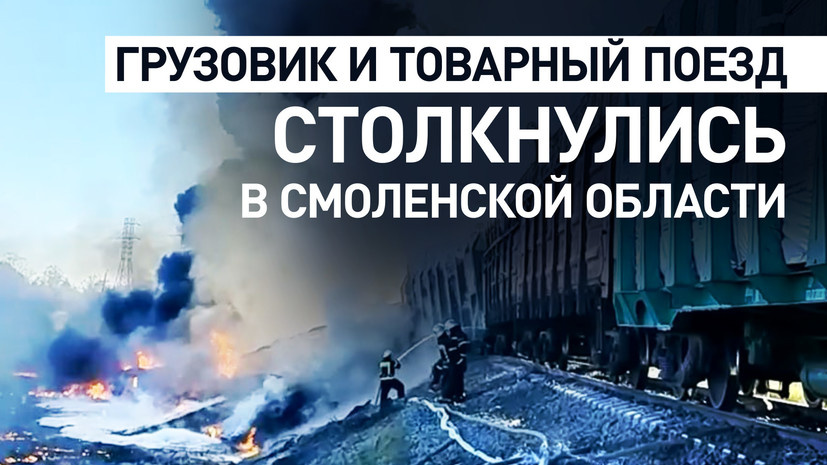 Огонь и столб дыма: в Смоленской области столкнулись грузовик и товарный поезд