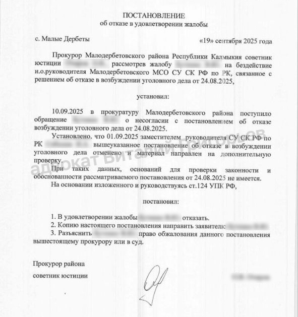 Этим случаем заинтересовался лично председатель Следственного комитета Александр Бастрыкин. По словам Григорьева, на 9-й день проверки по его жалобе прокурор района сообщил, что постановление об отказе в возбуждении дела от 24.08.2025 отменено ещё 1 сентября. При этом отменило его не надзорное ведомство, а само руководство следственного органа.