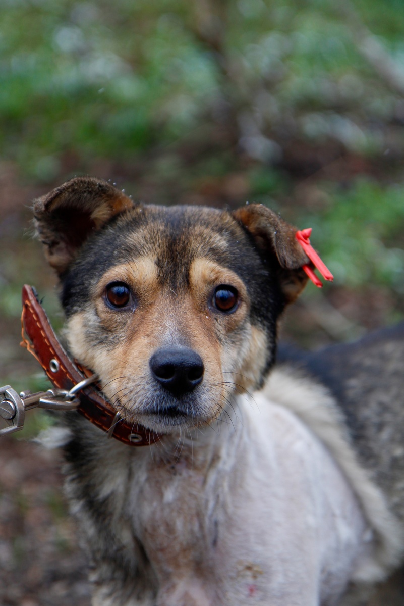 Пирожка сильно потрепали сородичи. Так, что он уже отдавал Богу душу. У него началась газовая гангрена. Счет шел, наверное, уже на минуты. И в последний момент он получил с небес эту минуту в качестве подарка. Интенсивная терапия в клинике, потом зачистка ран под наркозом - Пирожок перенес все врачебные манипуляции с мужеством викинга, быстро поправился и приехал в приют искать семью. В первые дни он очень стрессовал, из будки был виден только нос Пирожка - он высовывался из укрытия ровно настолько, чтобы дотянуться до миски с едой. Да уж, еда - двигатель прогресса для диких собак!