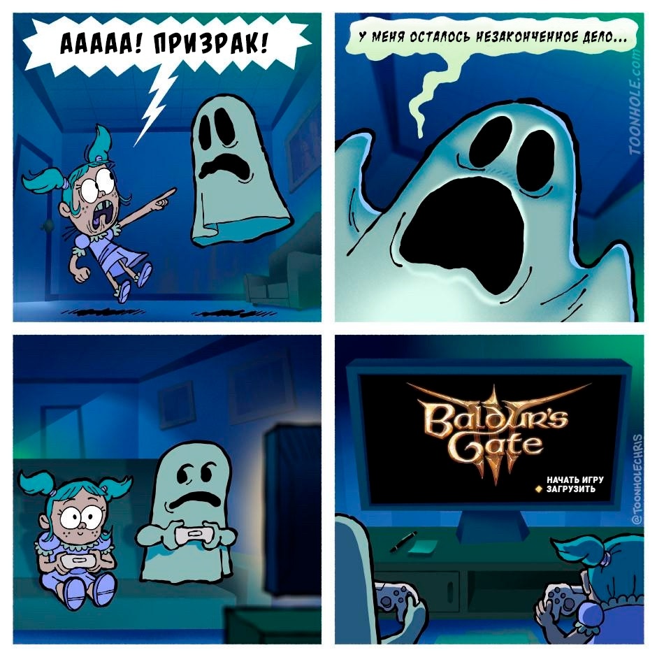 На всякий случай напомню: если в Дзене у меня только один блог с комиксами - и это Смешные картинки - то в VK у меня есть и еще одна группа, куда я выкладываю работы других авторов - она называется Страшные картинки - и там уже около 10 тысяч подписчиков! Как не сложно догадаться, там я выкладываю разные хоррор-комиксы и черный юмор. Если вам такое нравится - обязательно подписывайтесь! Ну а сегодня я решил собрать десятку свежих комиксов из мой страшной группы. Серия комиксов Toonhole (от англ. «toon» - «мультяшный» и «hole» - «дыра») - это проект, созданный четырьмя друзьями - Крисом Эллисоном (Chris Allison), Райаном Крамером (Ryan Kramer), Джоном Мартинезом (John Martinez) и Майком Нассаром (Mike Nassar). Каждый из авторов и рисует, и придумывает комиксы - к примеру, комикс ниже сделал Крис. Многие выпуски серии наполнены черным юмором, но и что-то милое порою тоже встречается. Литовская художница Герта Бурбе (Herta Burbė) раньше писала книжки для детей, а теперь рисует комиксы дл