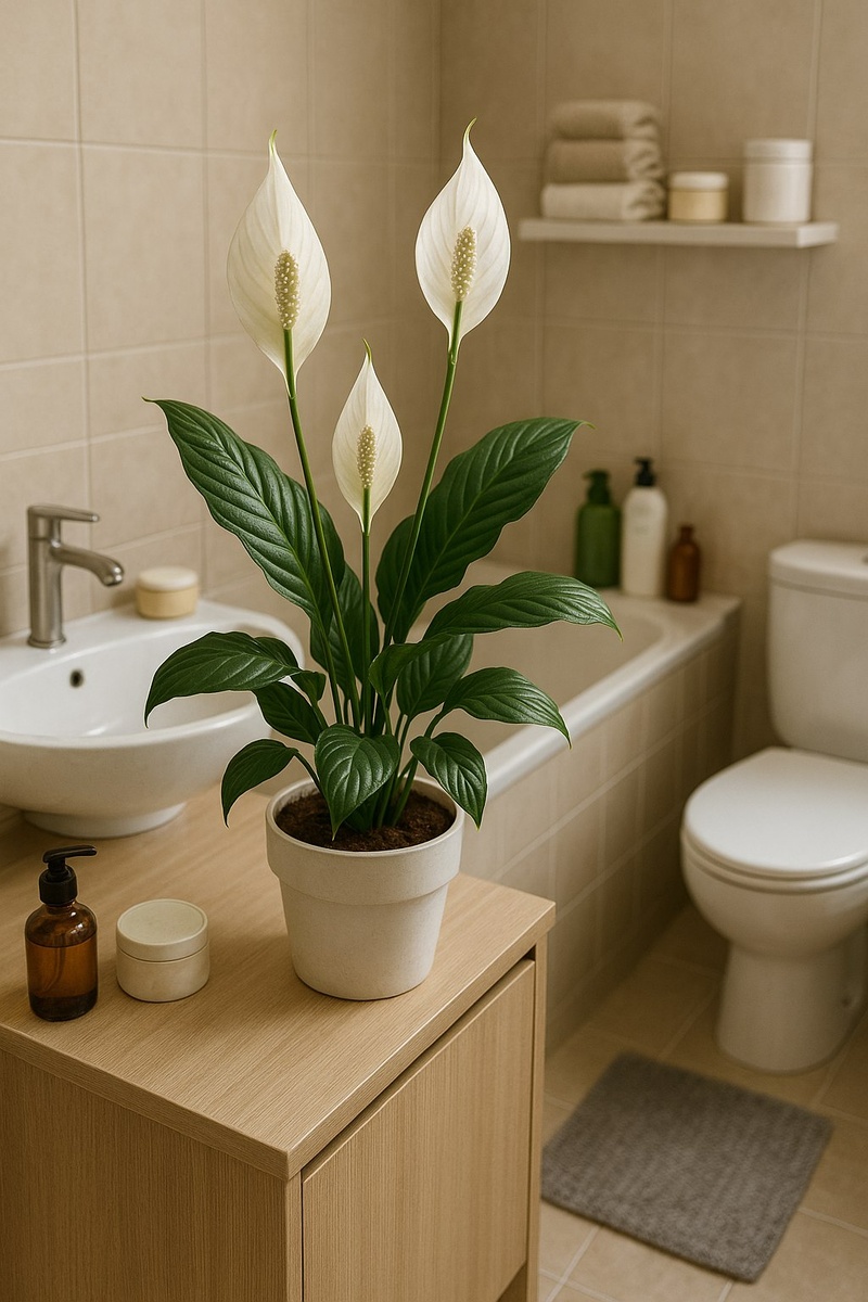Важно помнить: прямые солнечные лучи в ванной пересушивают почву и листву, поэтому лучше выбирать полутень, если в ванной есть окно..